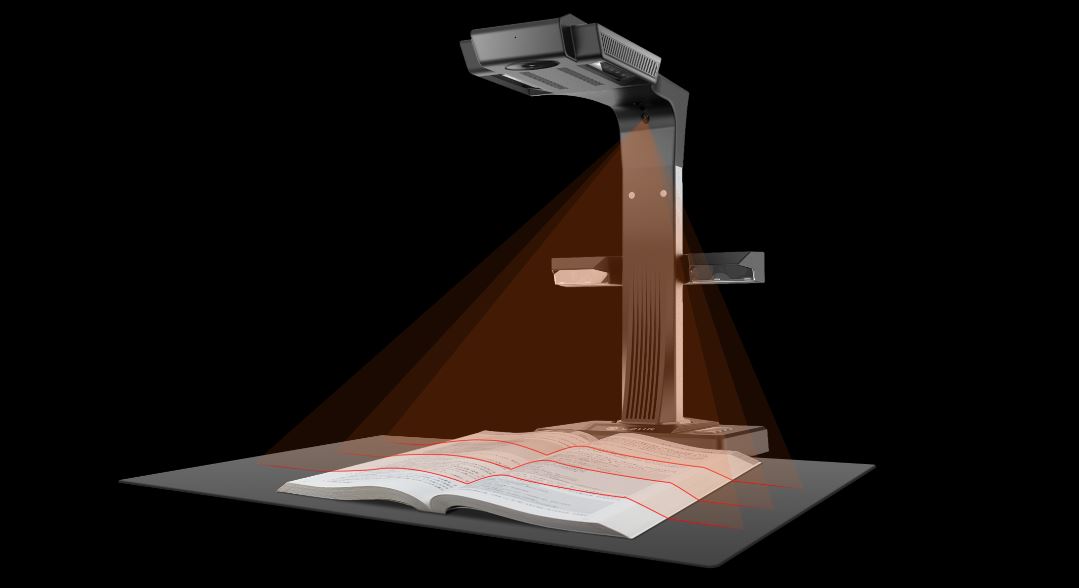En extra sidoljuskälla belyser dokumenten jämnt och förhindrar reflektioner för en ren, skarp bildkvalitet.
